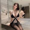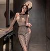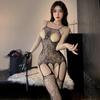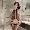 Women's Temptation Lingerie: Open-Crotch Bodysuit with Removable Black Stockings for Small Chest - Plus Size Available
