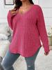 Experience the perfect blend of style and comfort with this stylish women's top, designed for the 2025 Autumn/Winter season. This plus-size piece features a flattering V-neckline and long sleeves, making it an excellent choice for cooler weather. The top is crafted from high-quality polyester material with a solid ribbed texture, providing a sleek and modern appearance. Whether you're dressing up for a special occasion or opting for a casual look, this versatile loose-fit top is a must-have addition to your wardrobe.