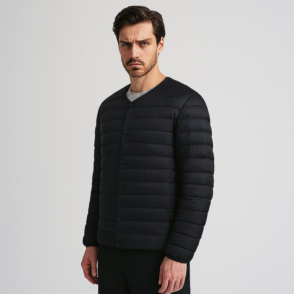 Představujeme stylovou a funkční bundu pro muže, s lehkým V-výstřihem, ideální do chladného počasí.. Tato bunda je plněna 90% prémiovým kachním peřím, nabízí vynikající izolaci a zároveň si udržuje střední tloušťku, která poskytuje pohodlí bez objemu.. Jednolitý vzor a stojáček dodávají vašemu šatníku nádech sofistikovanosti.. Tato bunda, vyrobená z odolného polyesterového materiálu, zajišťuje dlouhou životnost a odolnost.. Ideální pro jakýkoli neformální výlet nebo vrstvení v chladnějších měsících, kombinuje praktičnost s elegantním, moderním vzhledem.