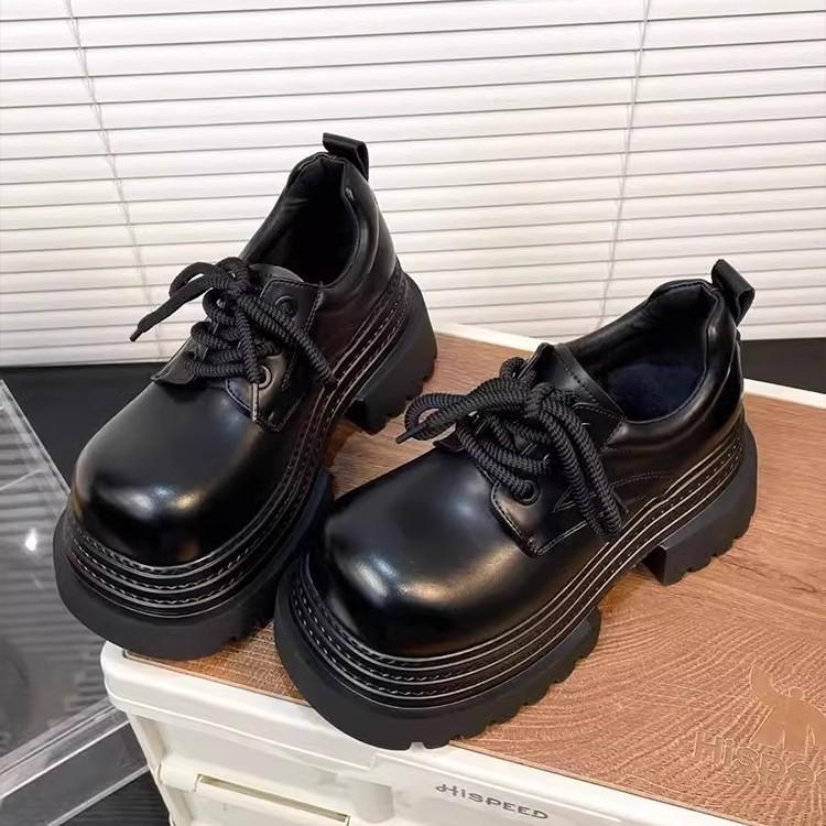 Muffin platform big head JK small leather shoes women's 2025 new small derby shoes British style lace-up loafers