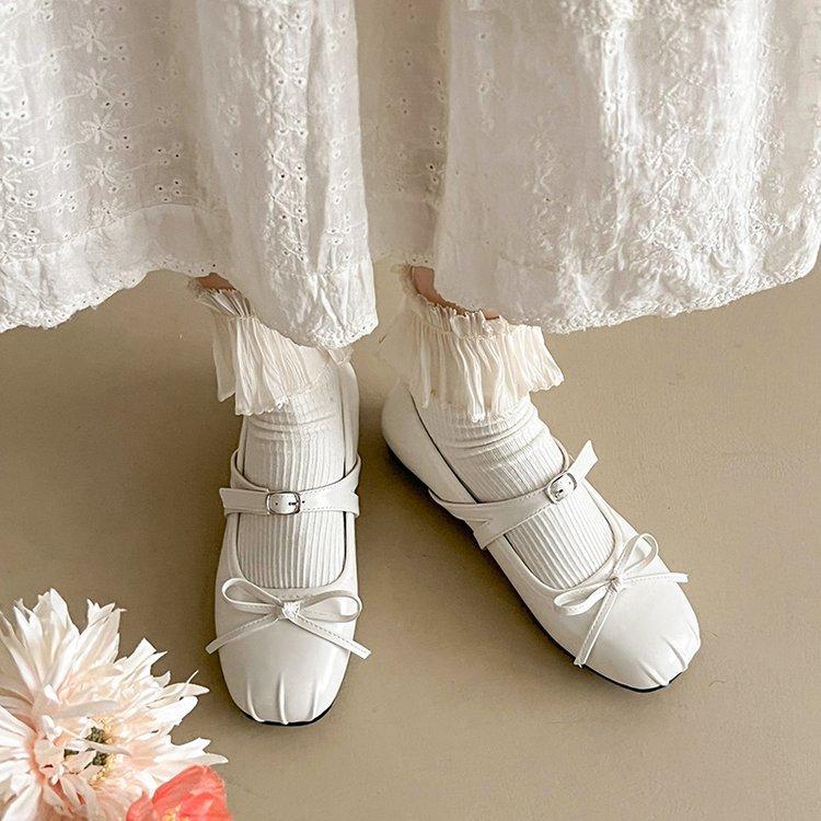 Soft leather version bow flat-soled small leather shoes women's 2025 spring new spring with skirt soft-soled Mary Jane single shoes