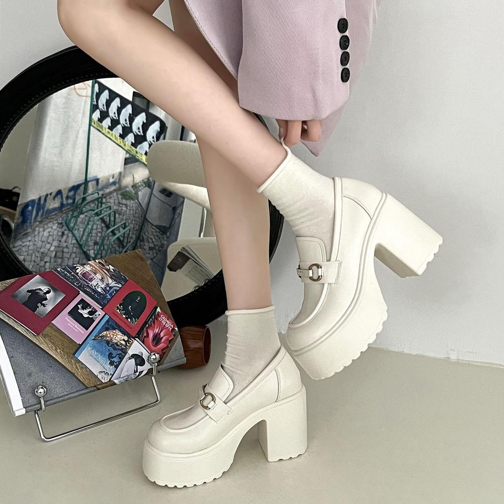 Internetová celebrita bílé francouzské malé silné podpatky dámské jaro a podzim 2025 nové univerzální malé kožené boty Mary Jane