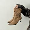 Queen Fan Khaki retro pointed stiletto boots women's 2025 new autumn with skirt heightening short boots