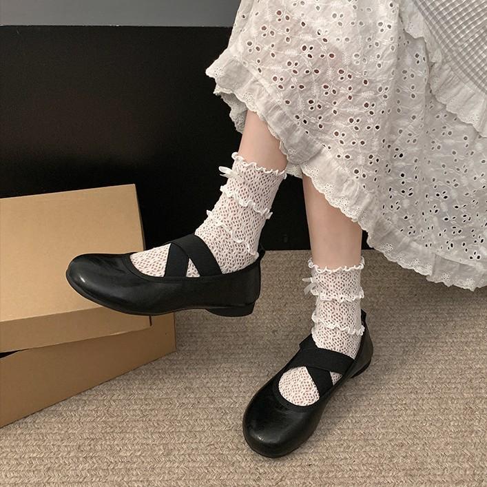 Queen Fan Black Retro Light Mouth Flat-soled Single Shoes Women's 2025 New Autumn Skirt Soft-soled Mary Jane Shoes
