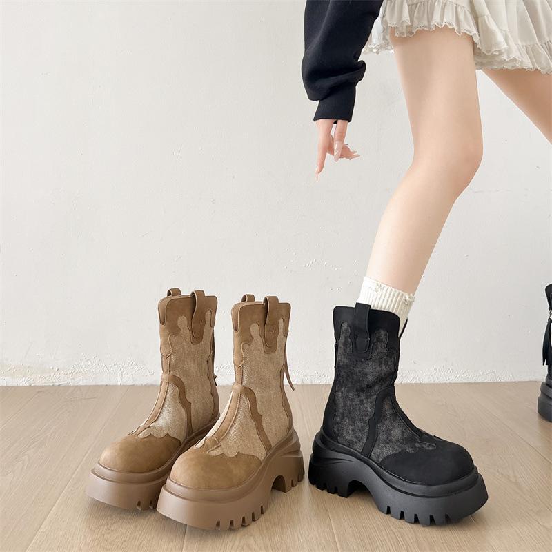 Queen Fan retro thick-soled heightening Martin boots women's 2025 new autumn thin brown Chelsea short boots