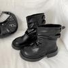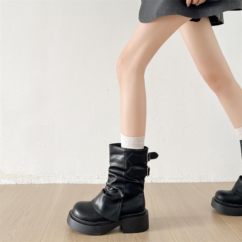 Black retro British platform Martin boots women's 2025 new autumn with skirt small slim short boots