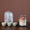 Suet jade travel tea set, one pot and three cups set, portable express cup, outdoor camping teapot, tea cup gift