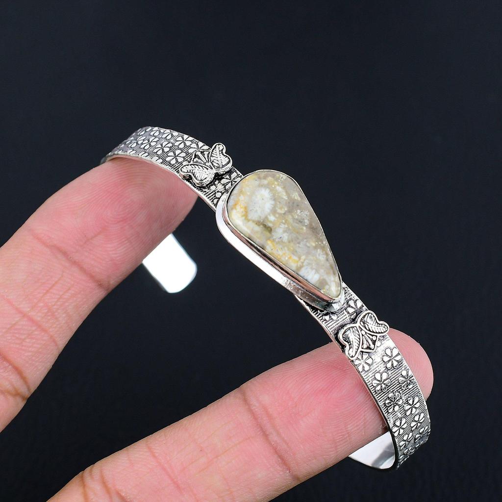 Sterling Silver Pear Root Chakra Natural Fossil Coral Handcrafted Sister Bangle