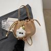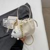 - **Structured Multi-Way Bag Details**: Features a stylish bucket bag silhouette with PU material, a textured finish, gold metal chain accents, a drawstring closure, and an adjustable shoulder strap. It comes with a cute plush pendant, exuding cute and trendy charm. Six vibrant color options cater to diverse style preferences.
