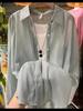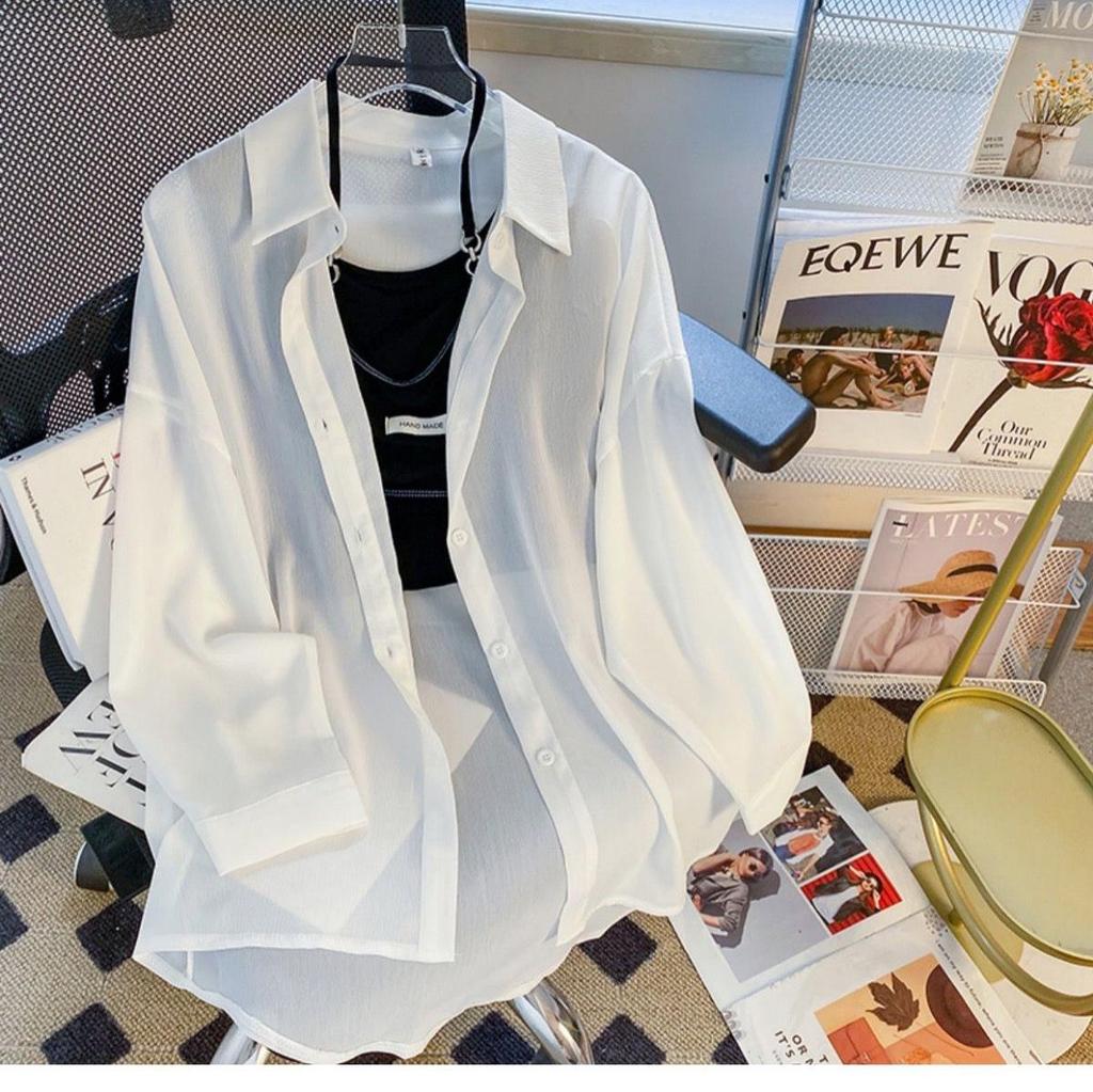 Zažijte dokonalou kombinaci stylu a ochrany s touto dámskou košilí s dlouhým rukávem z šifonu s UV ochranou. Tato košile, ušitá z lehkého šifonového materiálu, nabízí pohodlný a prodyšný střih, ideální pro jarní a letní dny.. Volný střih dodává ležérní eleganci, zatímco středně dlouhý design poskytuje všestranné možnosti stylingu.. S klopovým límcem hladce spojuje korejský styl a praktičnost.