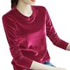 Elegantní sametová dámská halenka Temperamentní tričko s lesklým povrchem Pulovr Jaro Podzim Spodní tričko Dámský pulovr Dámský top