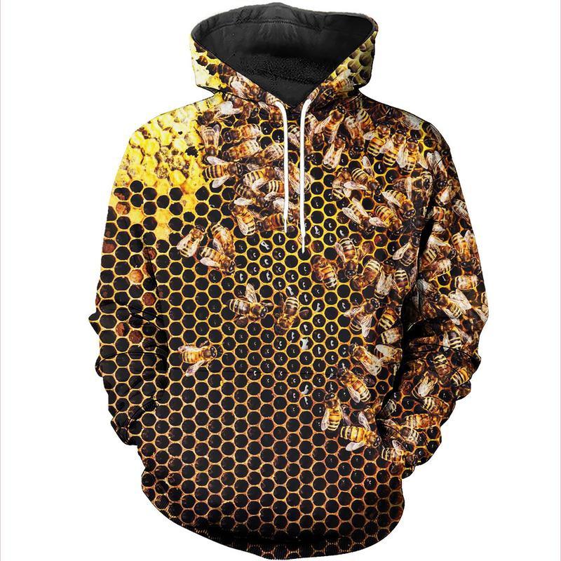 Vtipné mikiny s 3D potiskem včelí plástve pro muže a ženy, módní podzimní ležérní mikiny, nadměrné pulovry s kapucí, tepláková souprava
