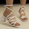 2025 new comfortable trend foreign trade large size straps cross buckle Roman temperament comfortable thick heel sandals
