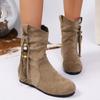 Large size retro short boots for women's 2025 autumn and winter new round head beaded decorative stacking boots for thin and velvet women