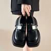 Black French loafers women's 2025 spring and autumn new muffin platform high-heeled single shoes British Mary Jane small leather shoes