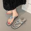 Slippers women's summer outer wear 2025 new with skirt rhinestone flip-flops seaside summer beautiful cool slippers women's sandals