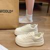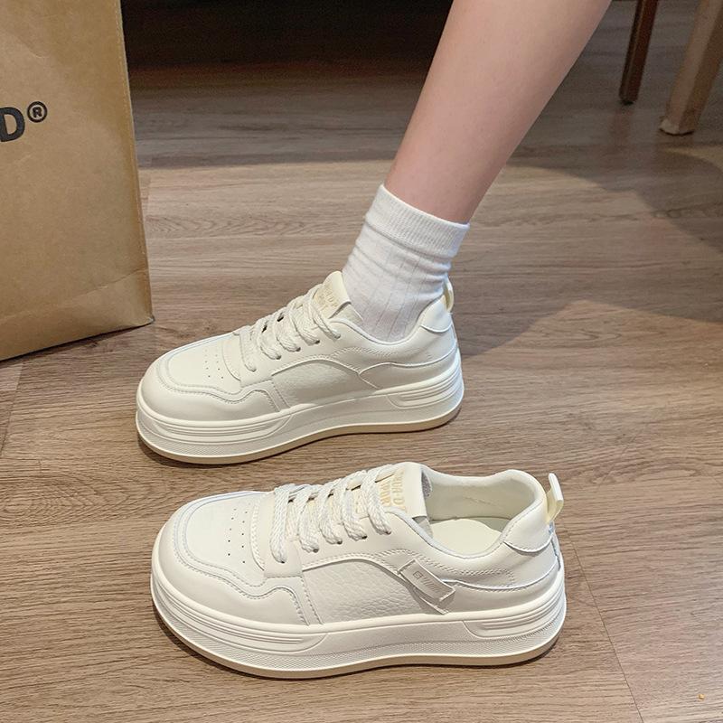 New 2025 autumn leather fashion thick-soled lace-up casual shoes women's small height-increasing board shoes women's white shoes