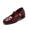 Xiaoxiangfeng Mary Jane shoes French one-word buckle real soft leather flat-soled single shoes light mouth thick heel small leather shoes loafers wom