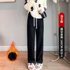[0g velvet imitation cashmere] Drawstring wide-leg pants women's winter high-waisted warm-knitting straight-leg pants with velvet and thicker