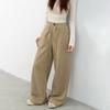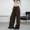 Brown casual sweatpants women's autumn and winter new design sense high waist straight lace-up narrow wide-leg pants