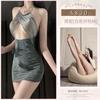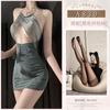 Sexy underwear sexy secretary hot hip skirt nightclub silver lace shiny chest wrapping pajamas hanging neck seduction woman