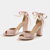 New Xiaoxiangfeng high heels women's thick heels sexy sandals versatile fairy with skirt ribbon bow pearl 43