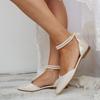 Špičaté duté sandály nízký podpatek lehká ústa bílá stuha perlové korálky střapec svatební šaty boty banket