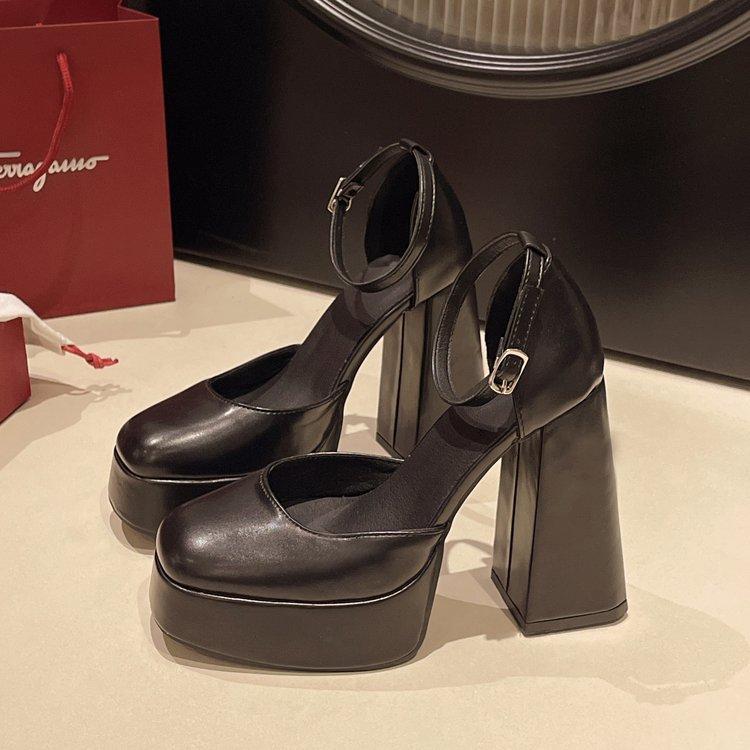 French fashion versatile single shoes 2025 new spring and summer thick heel shallow mouth one-word buckle Mary Jane high heels women