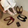 Evening gentle bow single shoes commuter black flats autumn and autumn French women's shoes with skirt high heels