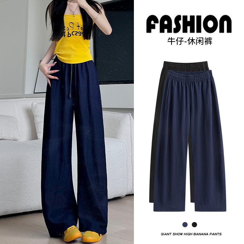 navy blue jeans autumn women's new pants women's thin loose wide-leg pants drape casual scimitar pants