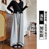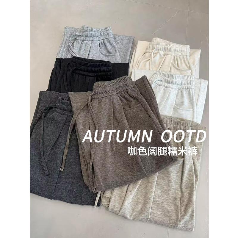 Bent pocket glutinous rice pants women's spring and autumn new casual high waist drape straight pants small women's lazy wide-leg pants