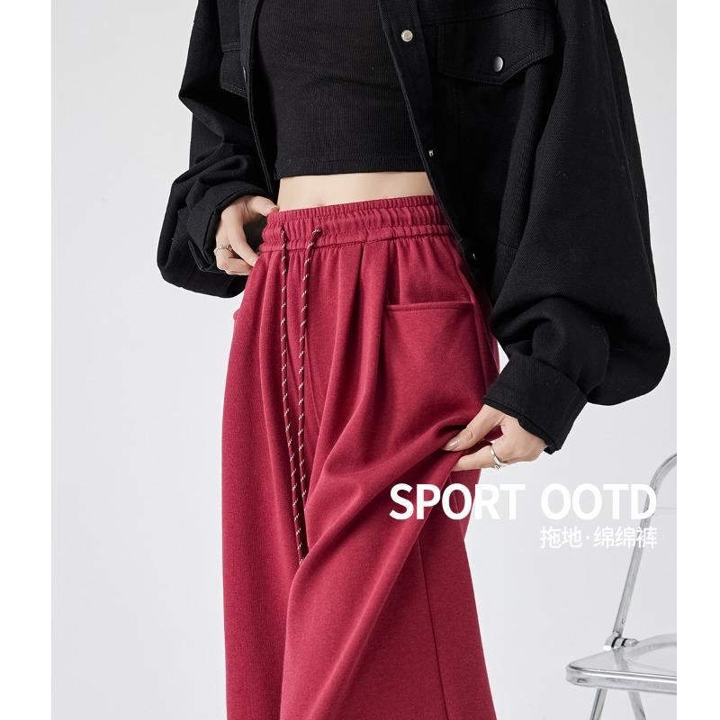 Gray sweatpants women's spring and autumn new loose lazy straight sweatpants small casual mopping wide-leg pants