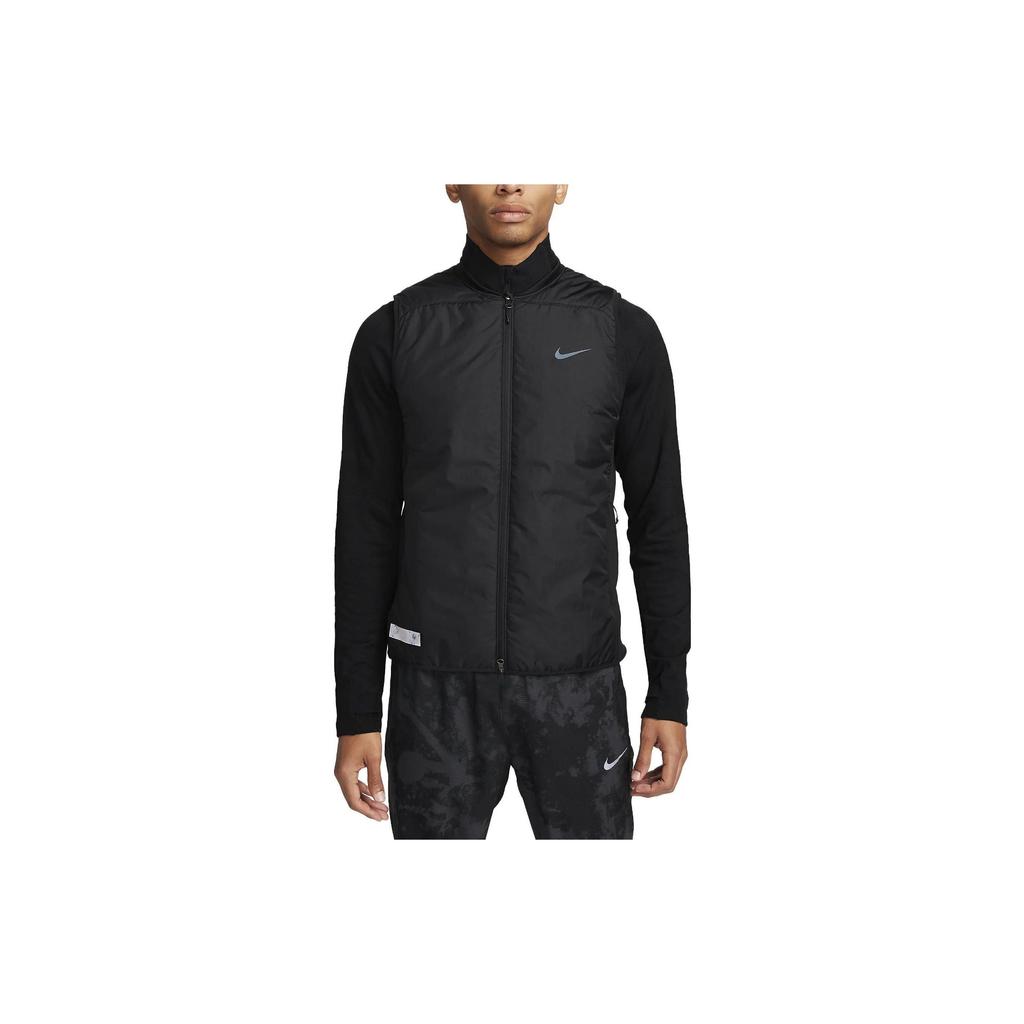 Nike Running Division Aerolayer Logo Print Comfort Fit Solid Zip Vest Men Vests Black FD4642-010