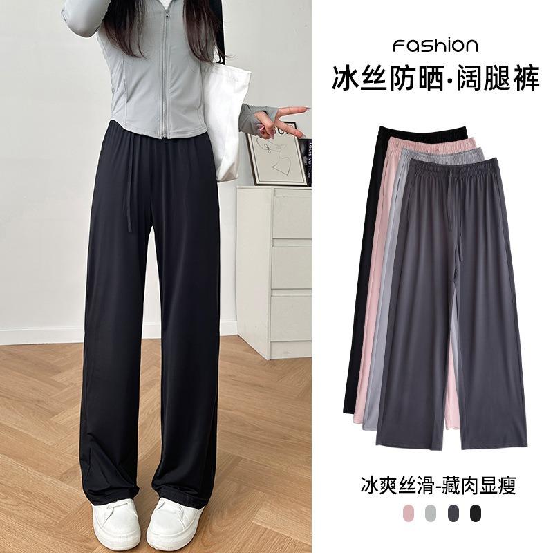 Pink ice silk sunscreen wide-leg pants women's summer thin new high waist drape anti-mosquito cool mask pants