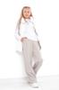 Girls’ palazzo trousers made of three-thread knit are a stylish and comfortable choice for teenagers. The loose straight cut with flared legs from the hips creates an elegant silhouette and ensures freedom of movement. The plain design pairs easily with T-shirts, sweatshirts, shirts, or hoodies, allowing for both casual and more polished looks for school or meetings. The three-thread fabric is durable, wear-resistant, maintains its shape well, and feels pleasant on the skin. The elastic waistband provides a comfortable fit, while the model’s practicality makes it perfect for everyday wear. Palazzo trousers are a versatile base for a teenage wardrobe.