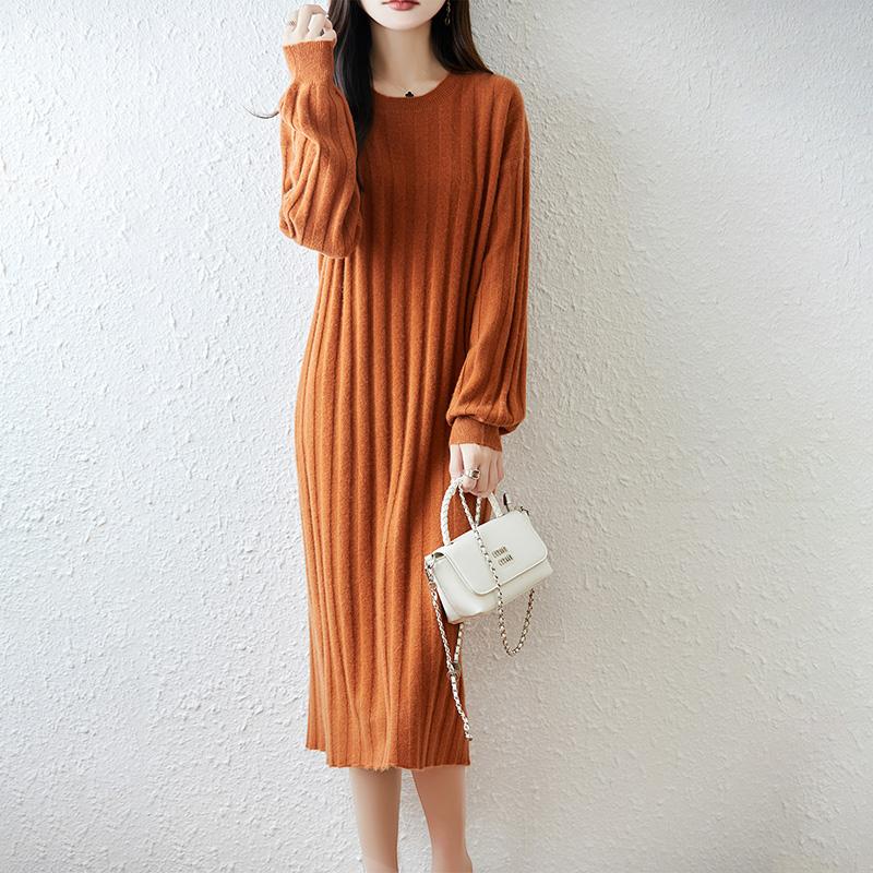 Women Sweater Dress 100% Wool MODERN NEW SAGA O-neck Knit Long Pullover Winter Jumpers Wool Long Dress Female