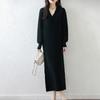 Women Sweater Dress 100% Wool MODERN NEW SAGA V-neck Knit Long Pullover Winter Jumpers Wool Long Dress Female