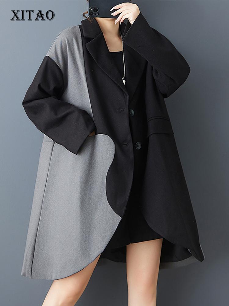 XITAO Female Patchwork A-line Loose Coat GJ1247