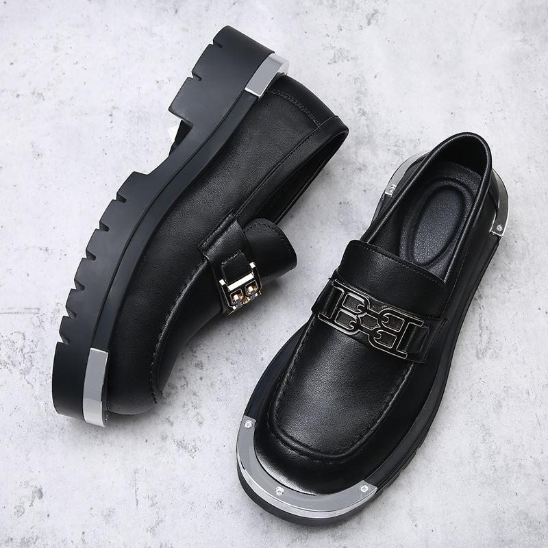 Trend niche men's shoes new fashion platform heightening leather shoes versatile casual shoes genuine leather commuting tide