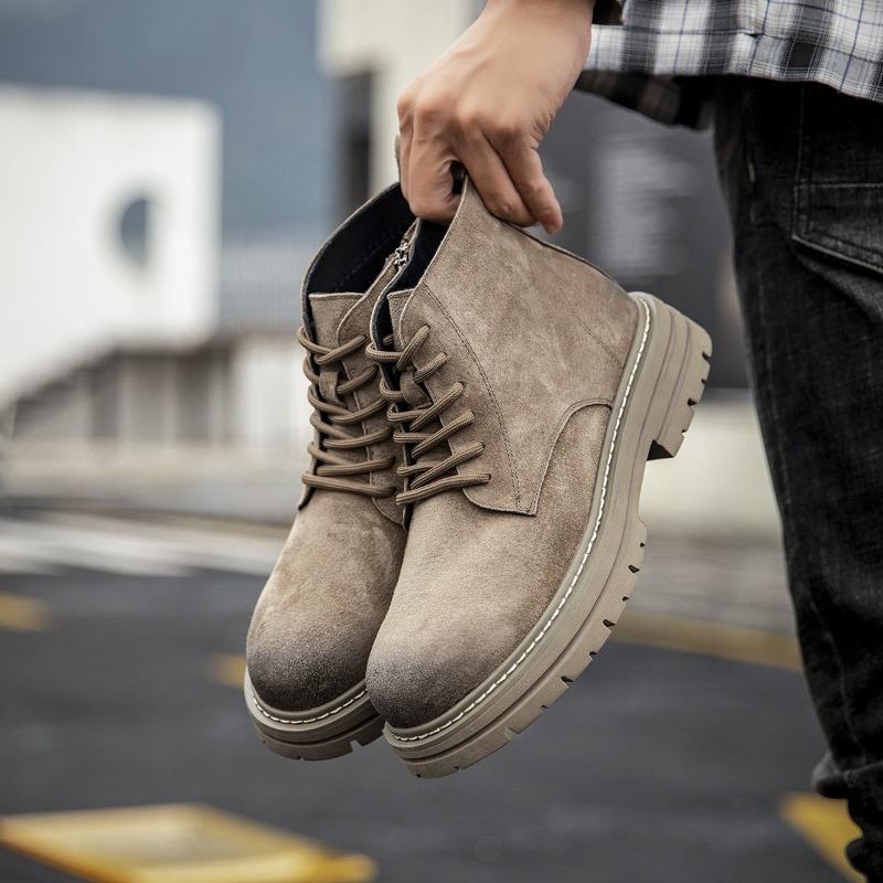 Retro Martin boots men's new autumn and winter cotton leather tooling boots men's thick-soled flip leather shoes