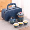 Ru kiln travel tea set, outdoor portable ceramic express cup with teapot, tea can, leather bag, business gift.