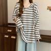 Spring and Autumn Large Size Fat mm Hooded Striped Long Sleeve Shirt Women's Loose Simple Versatile Age Reducing Casual Top Trend