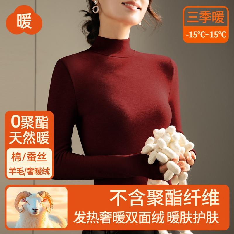 Semi-turtleneck silk thermal underwear women's top fleece thickened inner wool bottoming shirt warm fleece heating autumn clothes winter