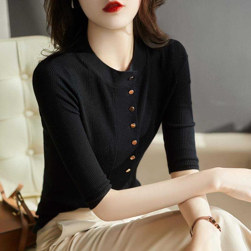 Knitted sweater women's new spring and autumn thin age-reducing bottoming shirt temperament crew neck top