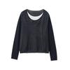 Contrasting color fake two-piece crew neck pullover knitted sweater women's summer thin long-sleeved inner casual and thin bottoming shirt