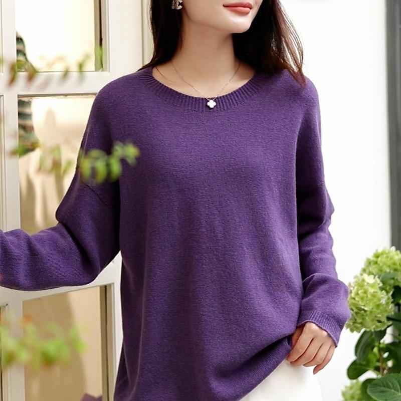 Lazy Fan Full Forming Seamless Integration 0 Wool Sweater Loose Crew Neck Autumn and Winter Knitted Sweater Women's New Sweater