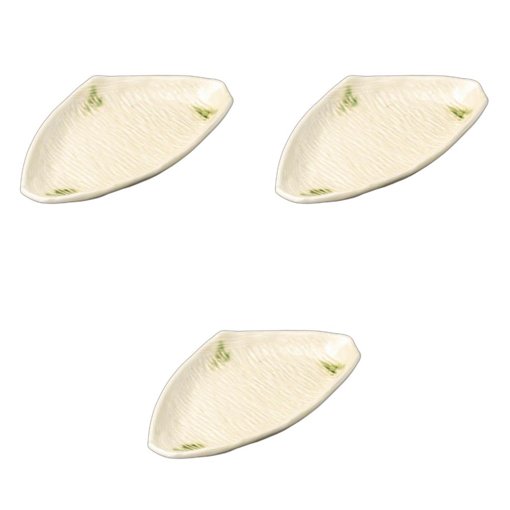 Set of 3 Yellow Glazed Oribe Nagashi Triangular Plates x 13 x Irregular Shape Ceramic Setomonohonpo 7.5cm [22.5 2.5cm] Plates, Reinforced,