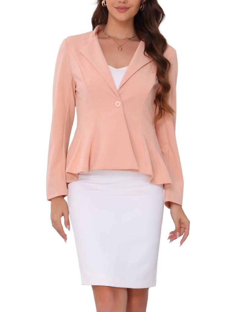 Allegra K Women's Work Office Blazer, Stand Collar, Long Sleeves, Single Button, Peplum Business Blazer