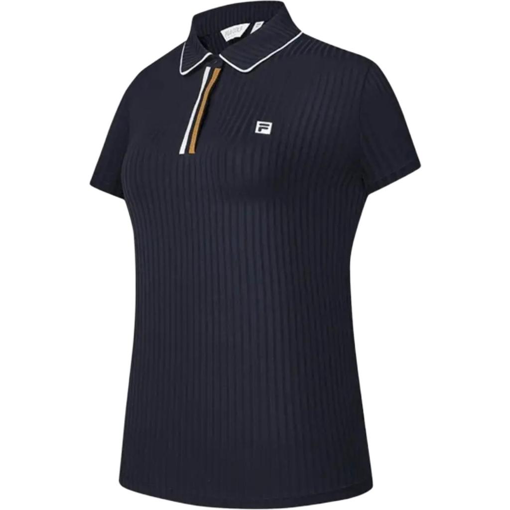 FILA Solid Color Sun Protection Comfortable Knitted Short Sleeve Polo Shirt Women tops Legendary-Blue A11W435102F-NV