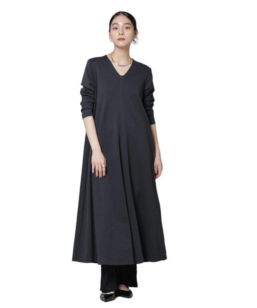Nano Universe Light Cotton Cardboard Flared Size Dress, Women's, M, 023, Charcoal, 669-5219313